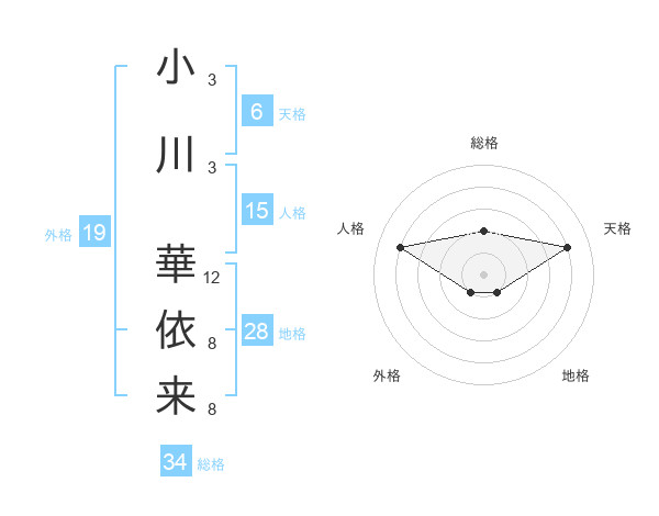 小川 華依来さんの天格は6画の4点!