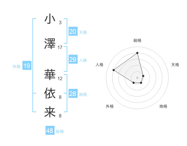 小澤 華依来さんの天格は20画の1点!