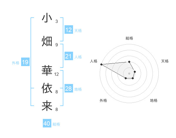 小畑 華依来さんを姓名の画数から五運を鑑定