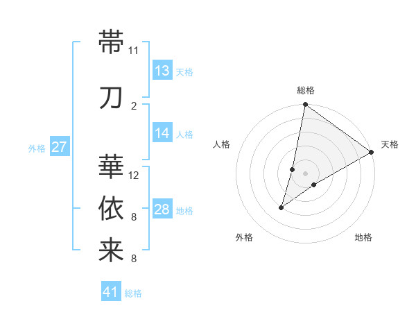 帯刀 華依来さんの天格は13画の5点!