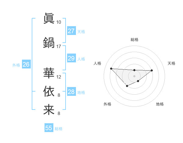 眞鍋 華依来さんを姓名の画数から五運を鑑定
