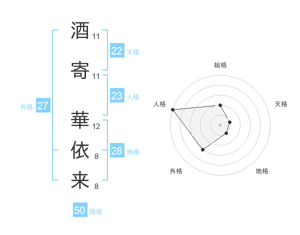 酒寄 華依来さんを姓名の画数から五運を鑑定