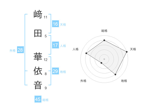 﨑田 華依音さんの天格は16画の5点!