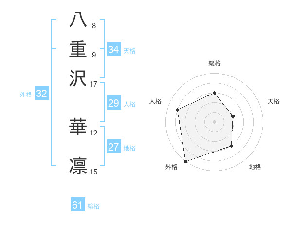 八重沢 華凛さんを姓名の画数から五運を鑑定