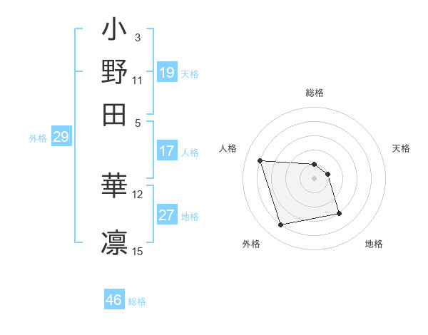 小野田 華凛さんを姓名の画数から五運を鑑定