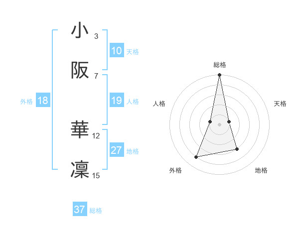 小阪 華凜さんの総格は37画の5点!