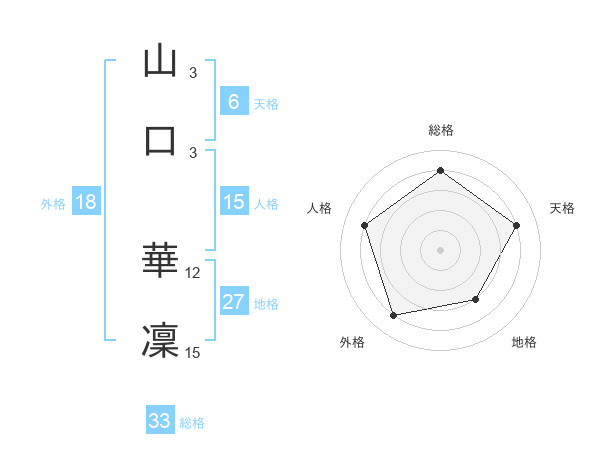 山口 華凜さんの総格は33画の4点!