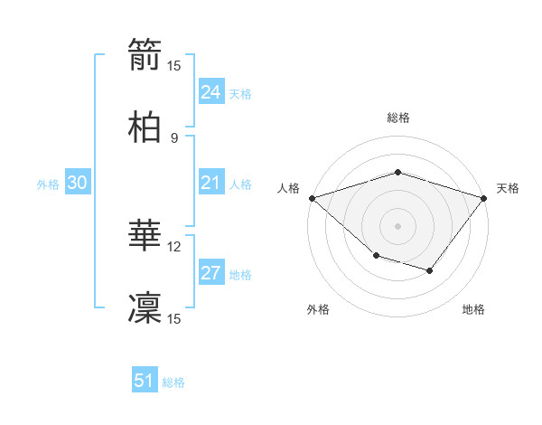 箭柏 華凜さんの天格は24画の5点!