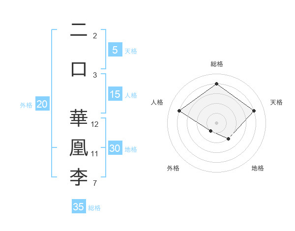 二口 華凰李さんを姓名の画数から五運を鑑定