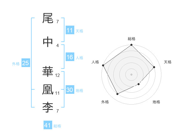 尾中 華凰李さんを姓名の画数から五運を鑑定