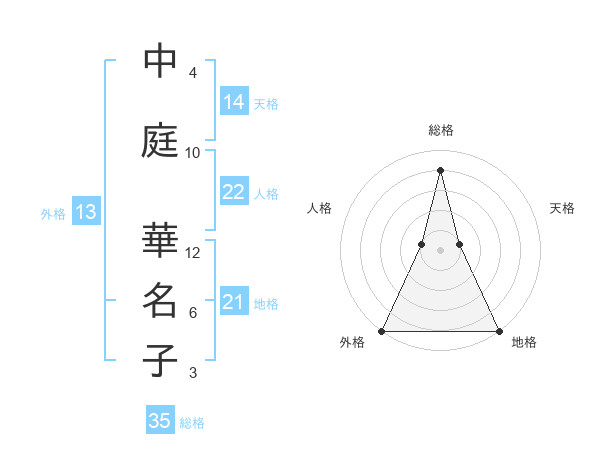 中庭 華名子さんを姓名の画数から五運を鑑定