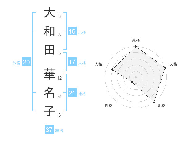 大和田 華名子さんを姓名の画数から五運を鑑定