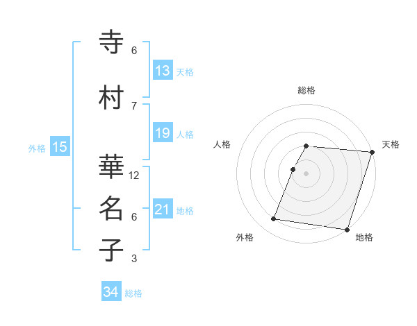寺村 華名子さんを姓名の画数から五運を鑑定