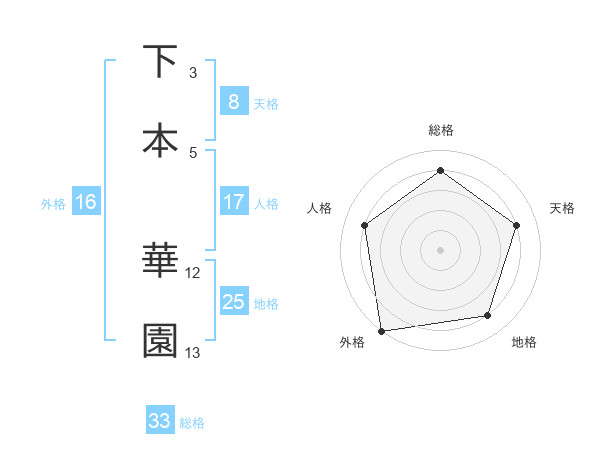 下本 華園さんの総格は33画の4点!