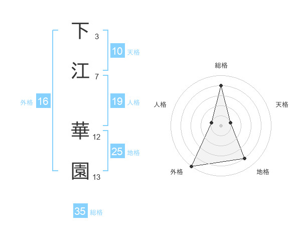 下江 華園さんの総格は35画の4点!