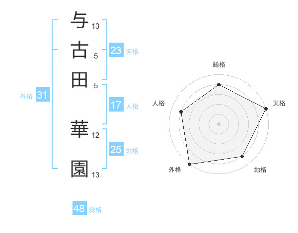 与古田 華園さんの天格は23画の5点!
