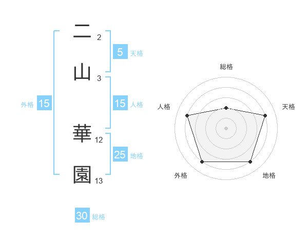 二山 華園さんの総格は30画の2点!