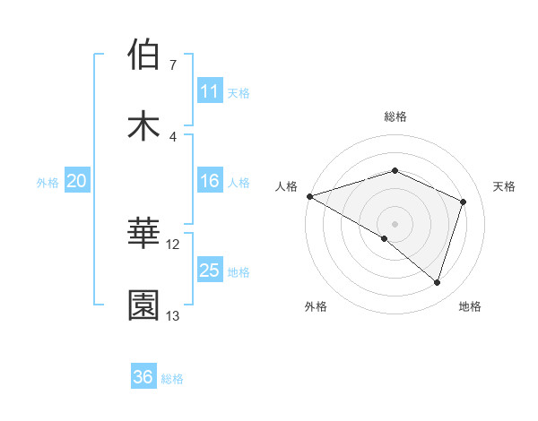 伯木 華園さんの天格は11画の4点!