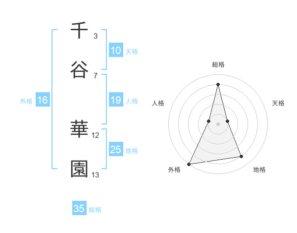 千谷 華園さんの総格は35画の4点!