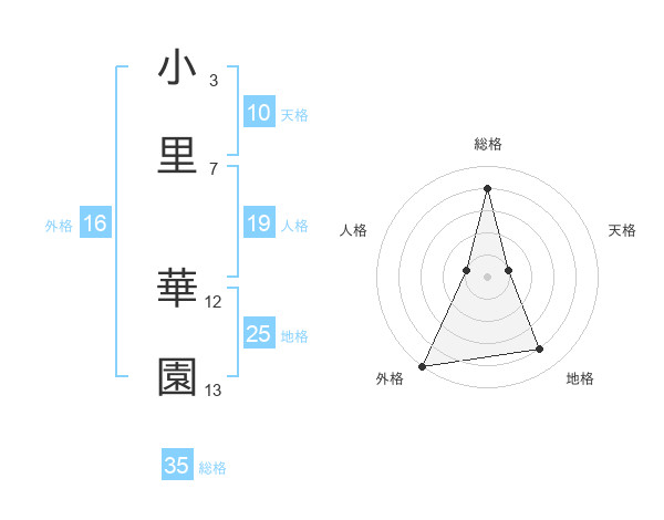 小里 華園さんの総格は35画の4点!