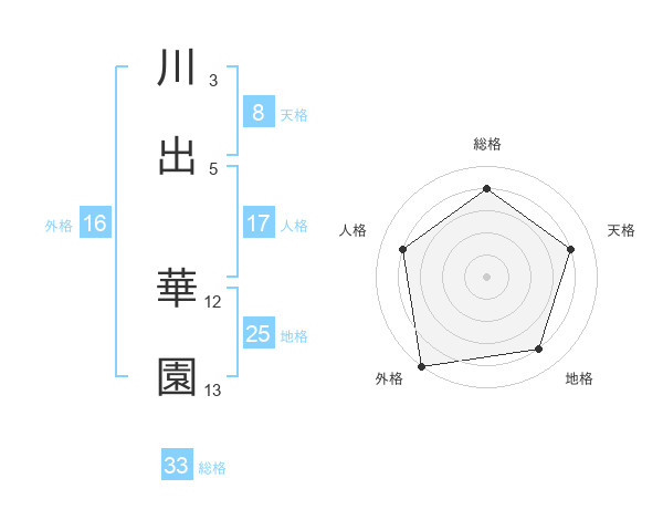川出 華園さんの外格は16画の5点!
