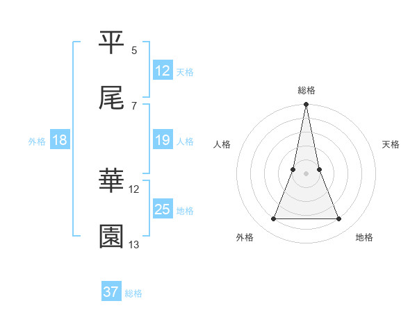 平尾 華園さんの総格は37画の5点!