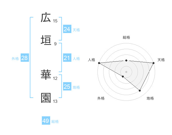 広垣 華園さんの天格は24画の5点!