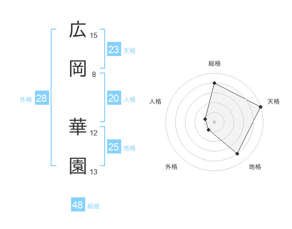 広岡 華園さんの天格は23画の5点!