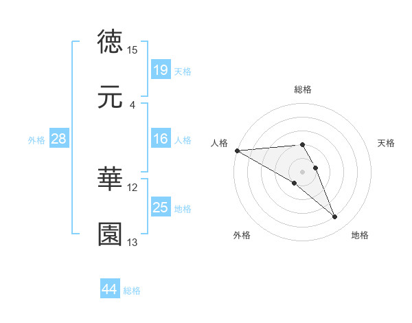 徳元 華園さんの総格は44画の2点!