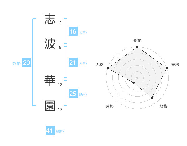 志波 華園さんの天格は16画の5点!