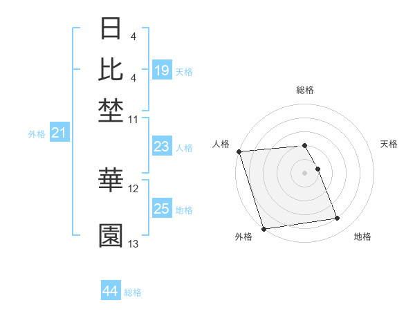 日比埜 華園さんを姓名の画数から五運を鑑定
