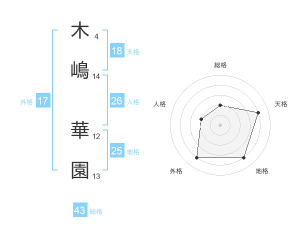 木嶋 華園さんを姓名の画数から五運を鑑定
