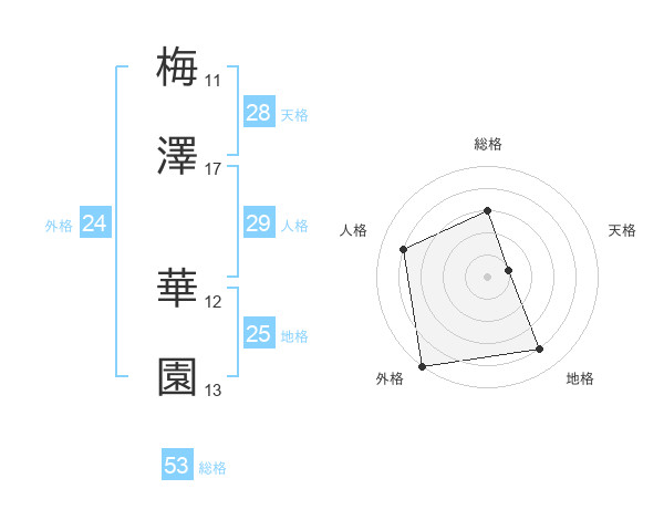梅澤 華園さんの外格は24画の5点!
