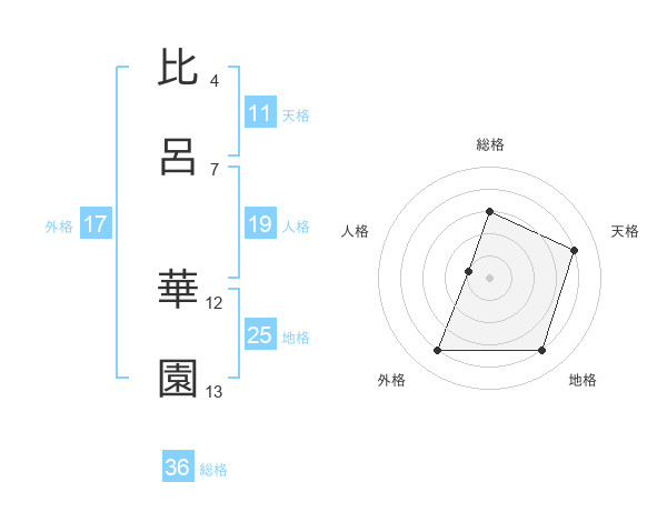 比呂 華園さんを姓名の画数から五運を鑑定