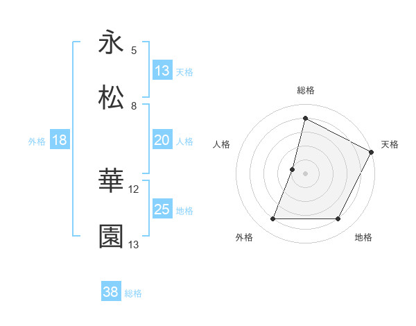 永松 華園さんの総格は38画の4点!