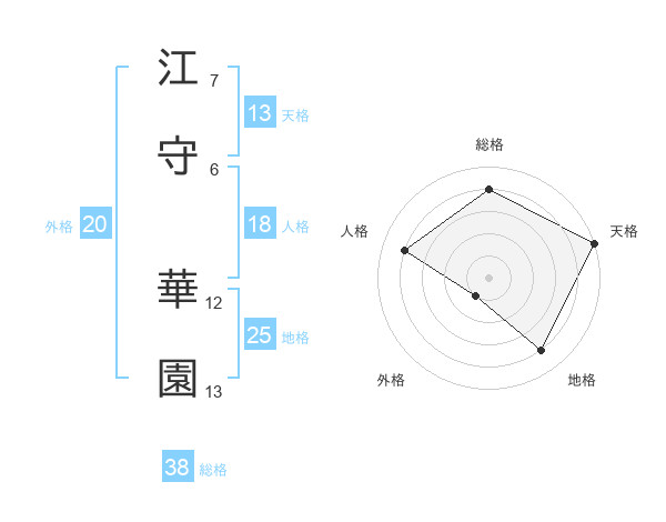 江守 華園さんの総格は38画の4点!