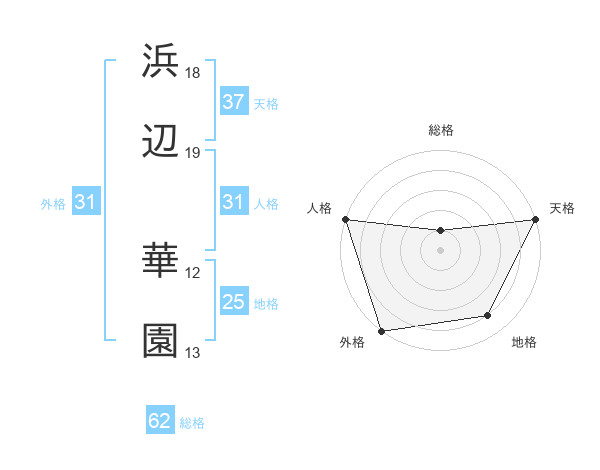 浜辺 華園さんの外格は31画の5点!