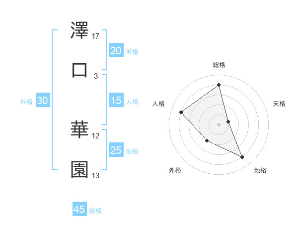 澤口 華園さんの総格は45画の4点!