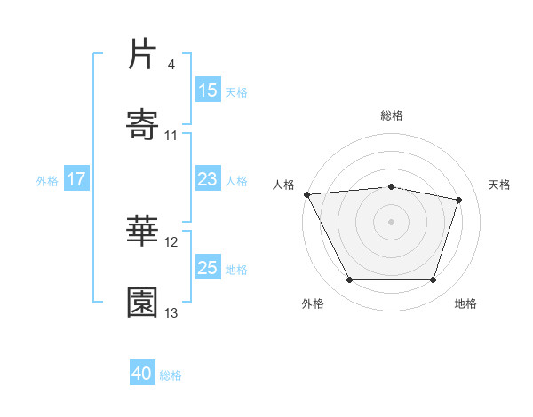 片寄 華園さんの外格は17画の4点!
