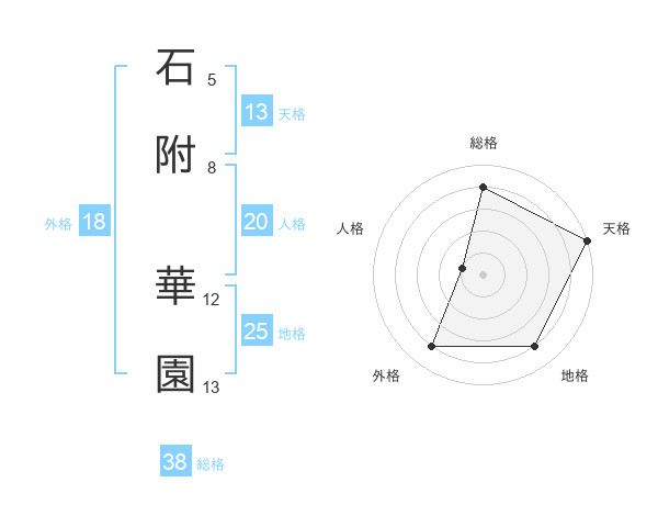 石附 華園さんの天格は13画の5点!