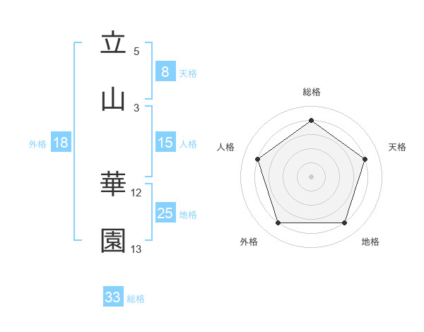 立山 華園さんの総格は33画の4点!
