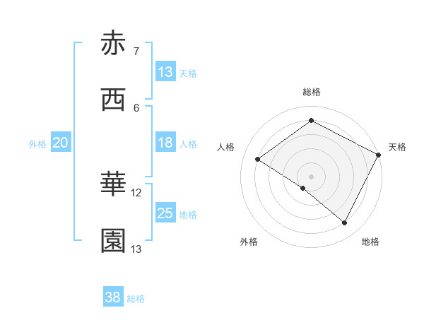 赤西 華園さんの天格は13画の5点!