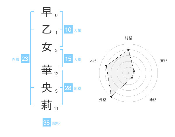 早乙女 華央莉さんを姓名の画数から五運を鑑定