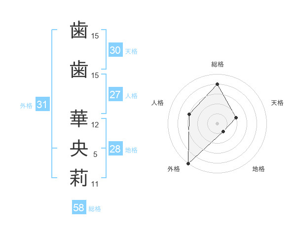 歯歯 華央莉さんを姓名の画数から五運を鑑定