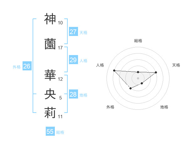 神薗 華央莉さんを姓名の画数から五運を鑑定