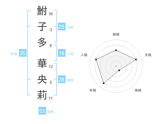 鮒子多 華央莉さんを姓名の画数から五運を鑑定