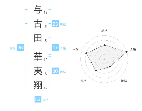 与古田 華夷翔さんを姓名の画数から五運を鑑定