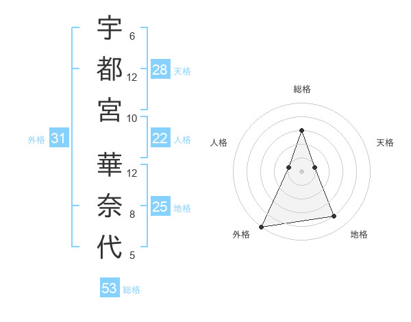 宇都宮 華奈代さんを姓名の画数から五運を鑑定