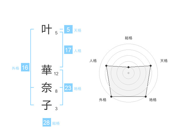叶 華奈子さんを姓名の画数から五運を鑑定
