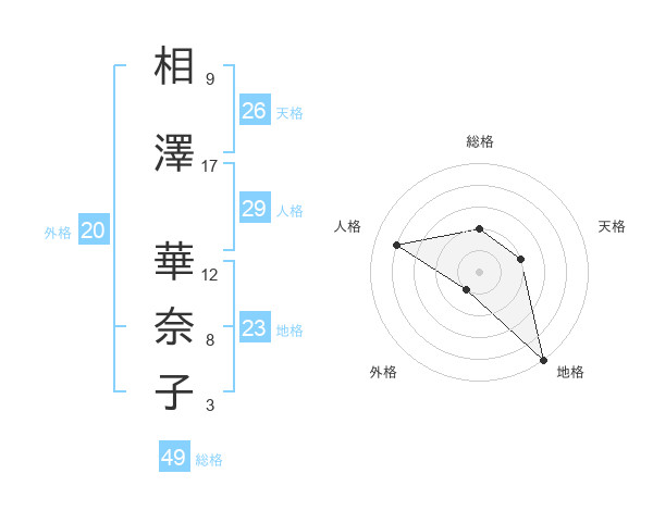 相澤 華奈子さんを姓名の画数から五運を鑑定